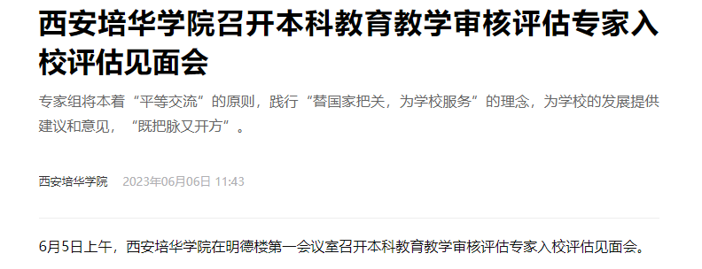 6月5日上午,西安培华学院在明德楼第一会议室召开本科教育教学审核评估专家入校评估见面会。