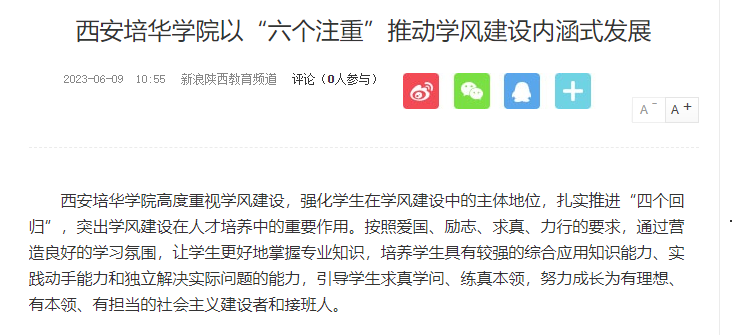 西安培华学院高度重视学风建设,强化学生在学风建设中的主体地位,扎实推进“四个回归”,突出学风建设在人才培养中的重要作用。按照爱国、励志、求真、力行的要求,通过营造良好的学习氛围,让学生更好地掌握专业知识,培养学生具有较强的综合应用知识能力、实践动手能力和独立解决实际问题的能力,引导学生求真学问、练真本领,努力成长为有理想、有本领、有担当的社会主义建设者和接班人。