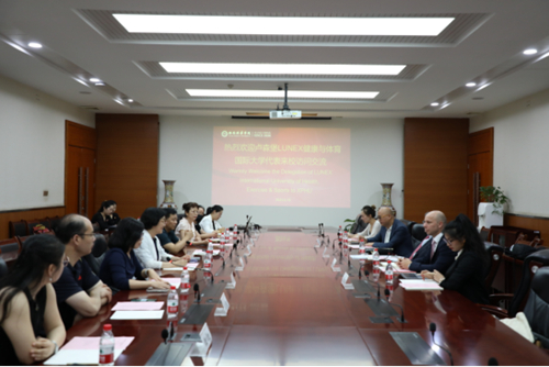 座谈会上,刘越莲副校长首先致欢迎辞,对LUNEX健康与体育国际大学来校交流访问表示热烈欢迎,同时向与会代表介绍了学校的历史沿革、学科和专业设置、国际交流与合作现况、医学院与体育学院概况。王志强院长主要介绍了体育学院师资队伍、教学和科研工作、实践和竞赛成果等概况。