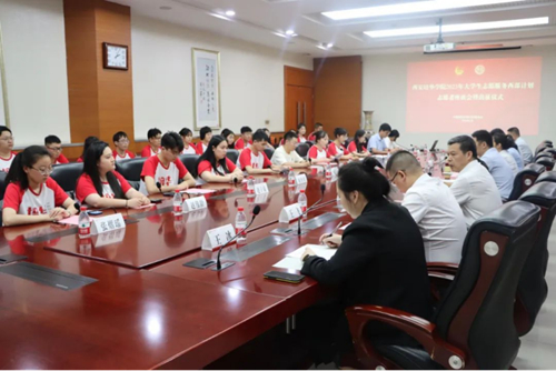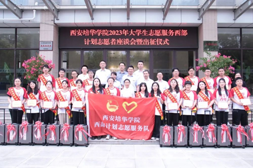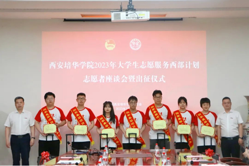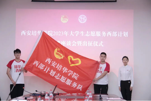 近日,西安培华学院2023年“大学生志愿服务西部计划”志愿者出征仪式在明德楼第一会议室举行。党委副书记、副校长姚文静,党委学工部、校团委、招生与就业指导中心、各有关二级学院领导及28名西部计划志愿者、学生代表参加了出征仪式。