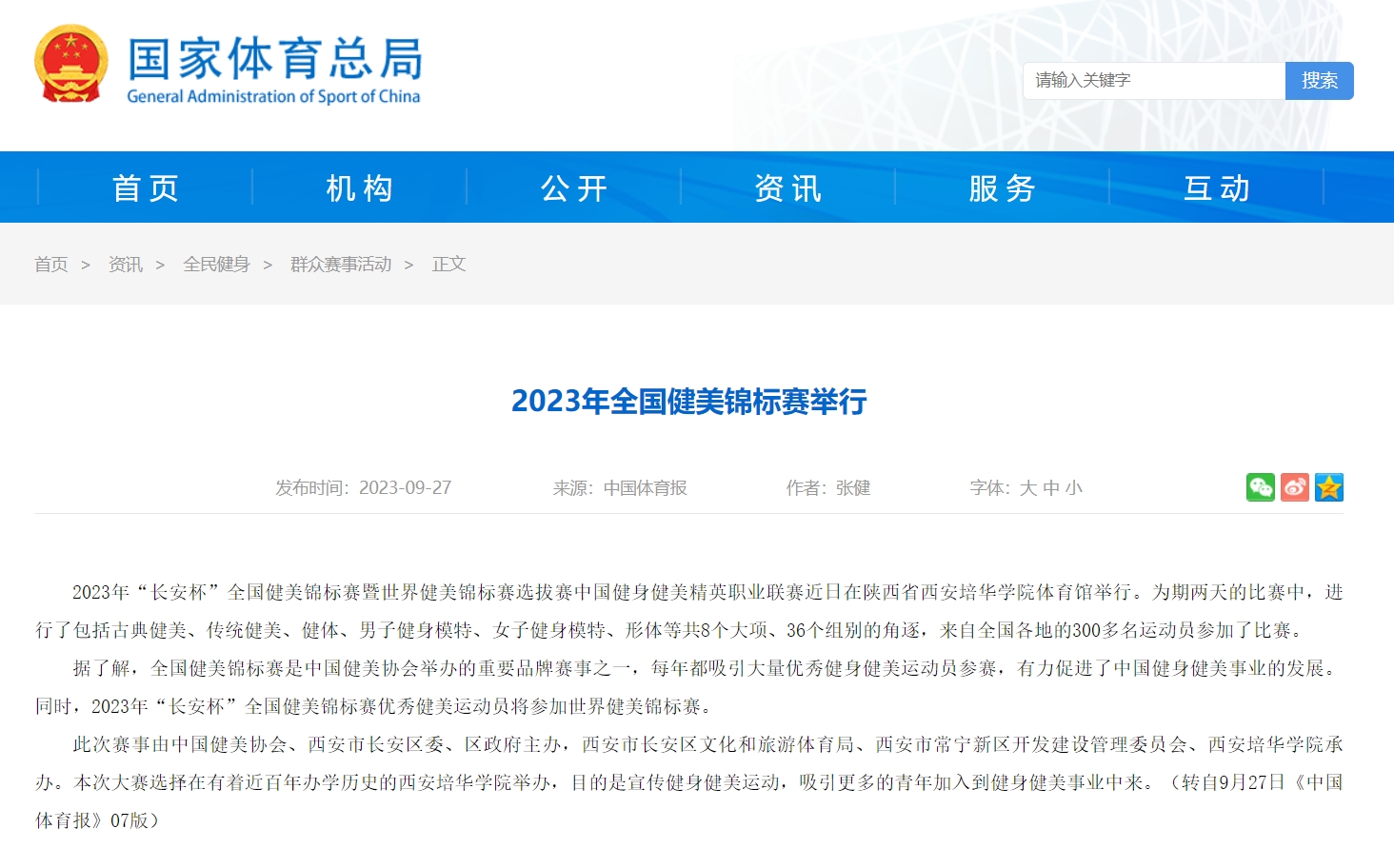 据了解,全国健美锦标赛是中国健美协会举办的重要品牌赛事之一,每年都吸引大量优秀健身健美运动员参赛,有力促进了中国健身健美事业的发展。同时,2023年“长安杯”全国健美锦标赛优秀健美运动员将参加世界健美锦标赛。