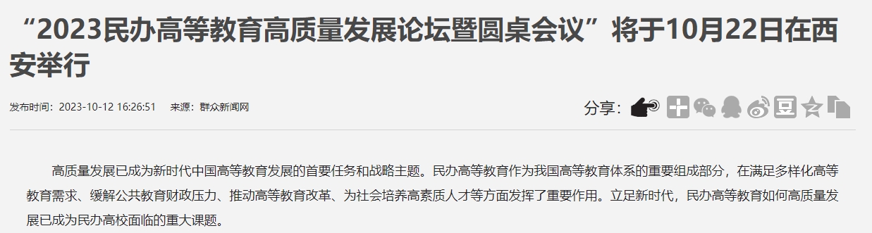 为推动民办高等教育高质量发展,陕西省高等教育学会、陕西省民办教育协会、西安培华学院将于10月22日联合举办“2023民办高等教育高质量发展论坛暨圆桌会议”(以下简称“论坛”)。在培华建校95周年之际,通过本次论坛,旨在搭建一个学术交流平台,汇聚高等教育专家学者、民办高校负责人、行业企业专家等,分享办学经验、探讨发展路径,形成提升民办高等教育高质量发展的策略。我们诚挚邀请民办高校董事长(理事长)、校长,高等教育专家学者出席此次盛会。您的出席将为本次论坛增添更多的精彩与深度,为与会嘉宾带来全新的启示和思考。