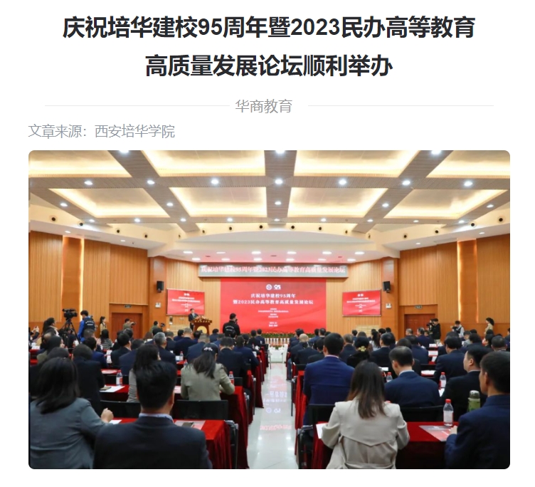 为庆祝培华建校95周年,助力学校高质量发展,10月22日,由陕西省高等教育学会、陕西省民办教育协会主办、西安培华学院承办的“2023民办高等教育高质量发展论坛”在西安培华学院明德楼报告厅举行。高等教育专家学者、民办高校负责人、行业企业专家等齐聚一堂,通过线下论坛交流、线上直播互动的方式,分享办学经验、探讨发展路径,研讨民办高校高质量发展的策略。本次论坛以“民办高等教育高质量发展”为主题,深入探讨民办高等教育如何在教育强国进程中发挥更大作用,更好地在应对发展挑战、破解时代性课题、服务区域创新发展、实现高质量发展等方面如何发挥高等教育不可替代的积极作用具有重要意义。