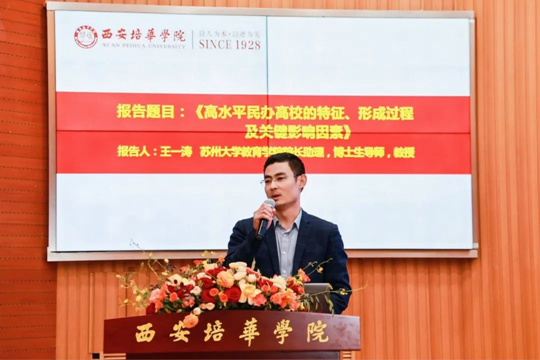 苏州大学教育学院院长助理、博士生导师王一涛作题为“高水平民办高校的特征、形成过程及关键影响因素”的报告