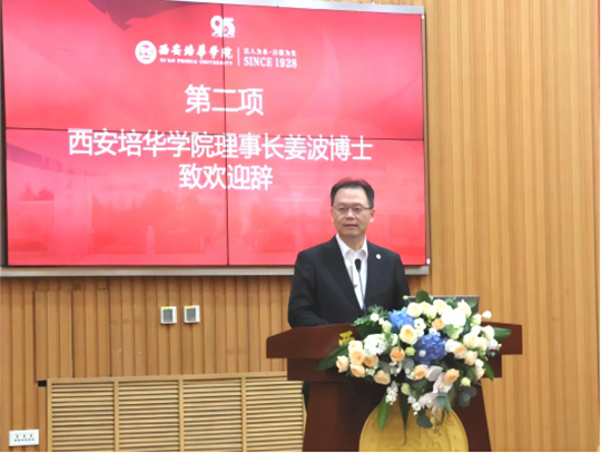 西安培华学院理事长姜波对在培华发展历程中给予学校支持与帮助的各方力量表示衷心的感谢。他表示,培华随着中国革命发展、纺织工业发展一路向前,创造了民办本科教育的辉煌成绩,站在新时代、新起点,面临新的挑战,每一位教育工作者都要努力破局。此次建筑与艺术设计学院专家委员会的成立,就是聚集教育专家与行业人才,为学院产教融合、学科建设、高质量发展凝聚共识,为即将走向百年的培华铺路育人,走好本科教育教学的高质量发展之路。