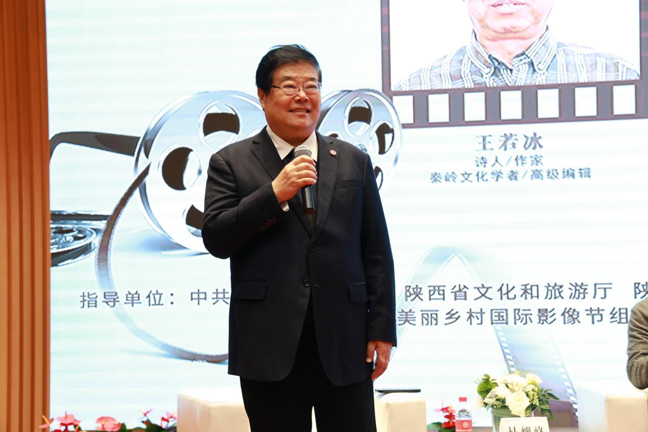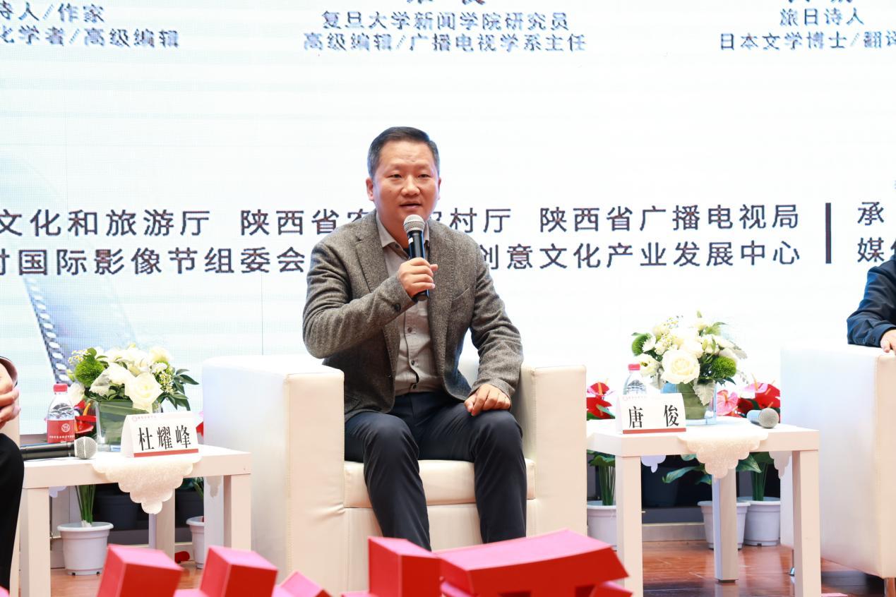 陕西省广播电视局传媒机构管理和对外合作交流处二级调研员田青松致辞,他指出讲好中国故事,需要振兴乡村文化,需要以国际化视角寻找美丽乡村、发现美丽乡村。以微电影、短视频的形式拍摄乡村美景、记录乡土乡情,也有利于地方经济发展,繁荣中国乡土文化。