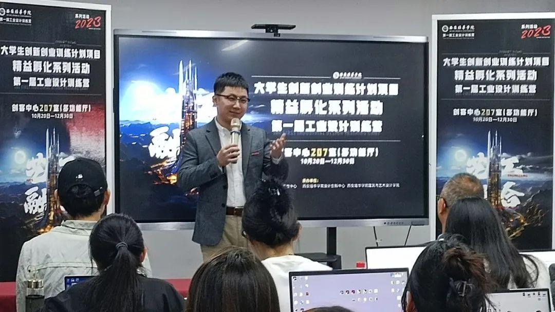 本次以“艺工融合”为主题的第一届工业设计训练营于近日启动,属于西安培华学院2023年度创新创业训练计划项目精益孵化系列活动的核心板块,由20余项培训内容组成,将一直延续至年底。本次训练营致力于为学生提供实际操作和积累经验的机会以提高他们的设计技能和创造力,通过这种实践性的学习,与工程、材料科学、市场营销等领域进行协同工作,创造出新的产品、服务或解决方案,这将有助于培养大学生的创新思维和解决问题的综合能力。