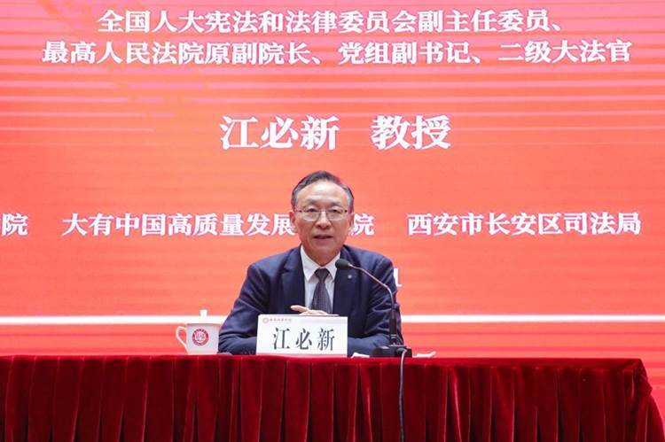 著名法学家,第十三届全国人民代表大会宪法和法律委员会副主任委员、最高人民法院原党组副书记、副院长,二级大法官江必新教授(学校供图)