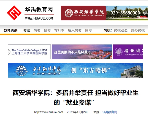强化责任担当,创新服务载体,推动就业指导提质增效。”这是西安培华学院校长李映方在2024届全省高校毕业生就业创业工作会议上的发言。他指出,2023年,西安培华学院全面落实高校毕业生就业工作的重要指示批示精神,落实省委、省政府关于稳就业决策部署,强化责任担当,创新服务载体,建立全程化就业指导服务育人机制,全力推动毕业生高质量充分就业。学校先后获评教育部全国创新创业典型经验高校、陕西省示范性高校就业创业指导服务机构、陕西高校就业工作先进集体等多项荣誉。