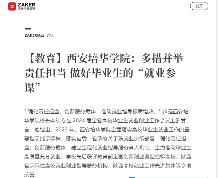 “强化责任担当,创新服务载体,推动就业指导提质增效。”这是西安培华学院校长李映方在2024届全省高校毕业生就业创业工作会议上的发言。他指出,2023年,西安培华学院全面落实高校毕业生就业工作的重要指示批示精神,落实省委、省政府关于稳就业决策部署,强化责任担当,创新服务载体,建立全程化就业指导服务育人机制,全力推动毕业生高质量充分就业。学校先后获评教育部全国创新创业典型经验高校、陕西省示范性高校就业创业指导服务机构、陕西高校就业工作先进集体等多项荣誉。