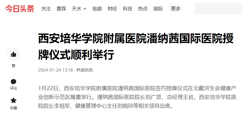 1月22日,西安培华学院附属医院潘纳茜国际医院签约授牌仪式在北戴河生命健康产业创新示范区隆重举行。潘纳茜国际医院院长刘广贤、总经理王岩,西安培华学院医院院长李旭军、健康管理中心主任刘晓玲等相关领导出席。