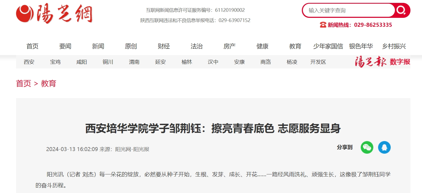 邹荆钰坚持“有一份热,发一分光”,她在短暂的大学时光里,贡献自己的青春力量。