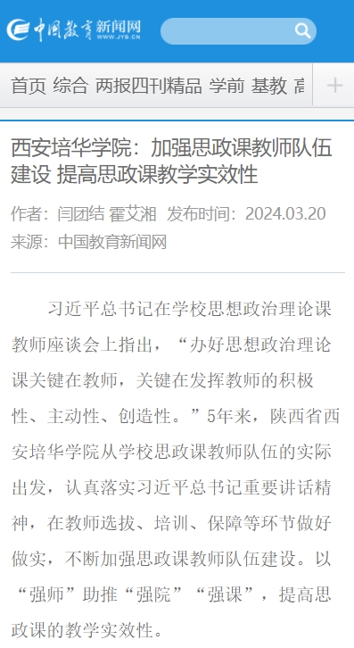 习近平总书记在学校思想政治理论课教师座谈会上指出,“办好思想政治理论课关键在教师,关键在发挥教师的积极性、主动性、创造性。”5年来,陕西省西安培华学院从学校思政课教师队伍的实际出发,认真落实习近平总书记重要讲话精神,在教师选拔、培训、保障等环节做好做实,不断加强思政课教师队伍建设。以“强师”助推“强院”“强课”,提高思政课的教学实效性。