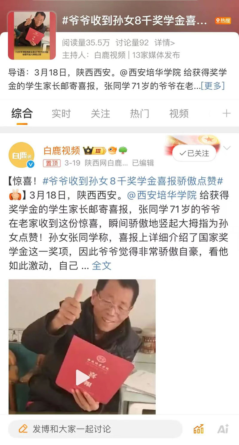 近日,西安培华学院寄出的“特殊”快递收到了暖心回应。原来,西安培华学院将804份喜报寄出,让学生家长共享喜悦。收到喜报后,家长们纷纷回应“已签收”,并晒出与喜报的合影表达喜悦之情。