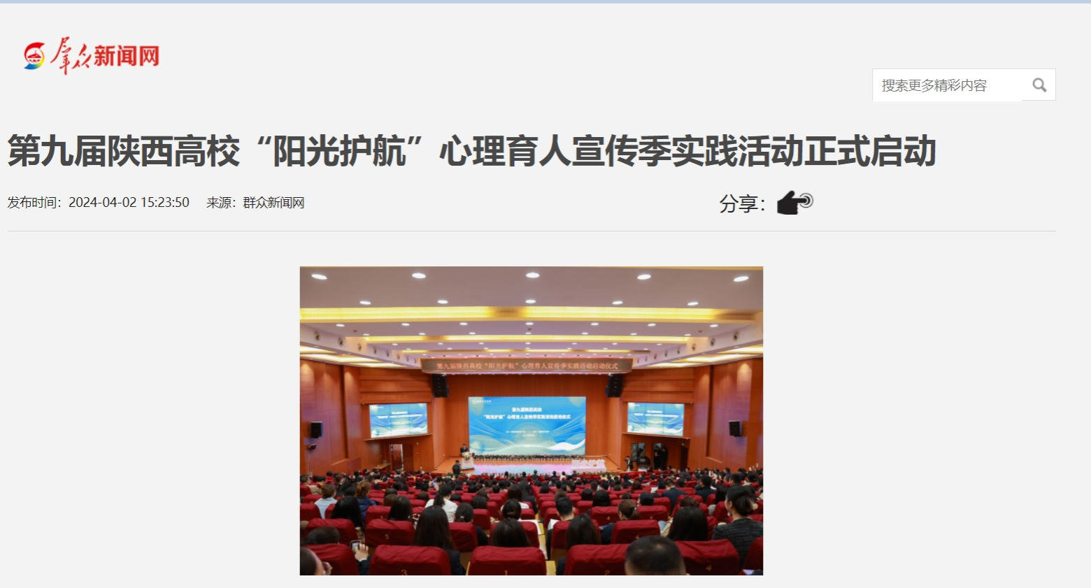 据悉,陕西高校“阳光护航”心理育人宣传季实践活动作为陕西省大学生思想政治教育的一项品牌活动,已连续举办九届。2024年宣传季实践活动以“惜青春韶华,赴‘心’辰大海”为主题,将通过多样活动充分调动师生参与心理健康教育工作的主动性积极性,全方位培育学生积极心理品质,积极构建高校心理育人新生态新格局。