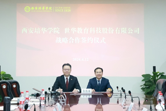 4月12日下午,西安培华学院与世华教育集团战略合作签约仪式在西安培华学院举行。西安培华学院理事长姜波、世华教育集团理事长姜岚昕及双方相关领导出席了签约仪式。
