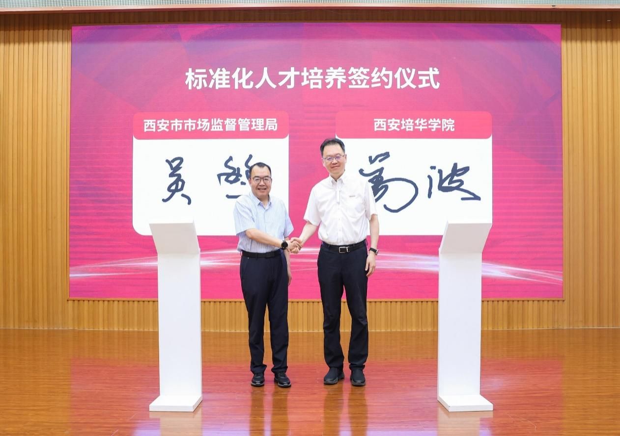 开班仪式上,吴繁与姜波签订了《西安市标准化人才培养合作协议》,协议决定在西安培华学院设立西安市标准化人才培养培训教学基地(培华校区)。