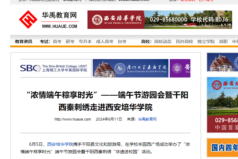 6月5日,西安培华学院携手千阳县文化和旅游局,在学校丰园西广场成功举办了“浓情端午粽享时光”端午节游园会暨千阳西秦刺绣“非遗进校园”活动。