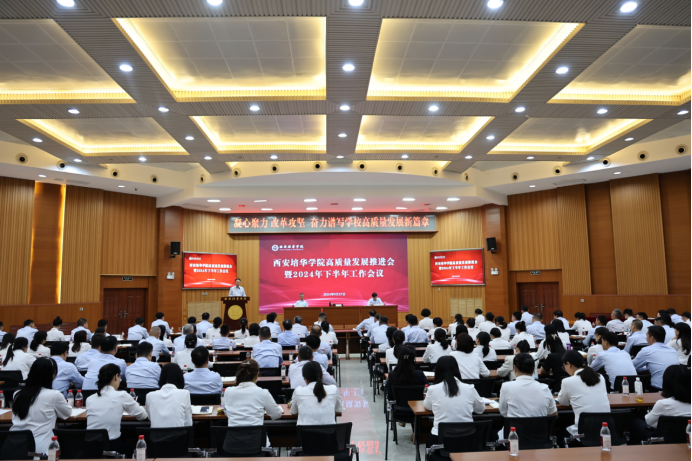 9月27日下午,西安培华学院隆重召开高质量发展推进会暨2024年下半年工作会议,旨在深入学习贯彻党的二十届三中全会和全国教育大会精神,为学校高质量发展谋篇布局,全面部署下半年重点工作。全体校领导、二级学院院长、书记、行政部门干部、学院代表等200余人参加此次会议。会议由党委书记刘锋主持。