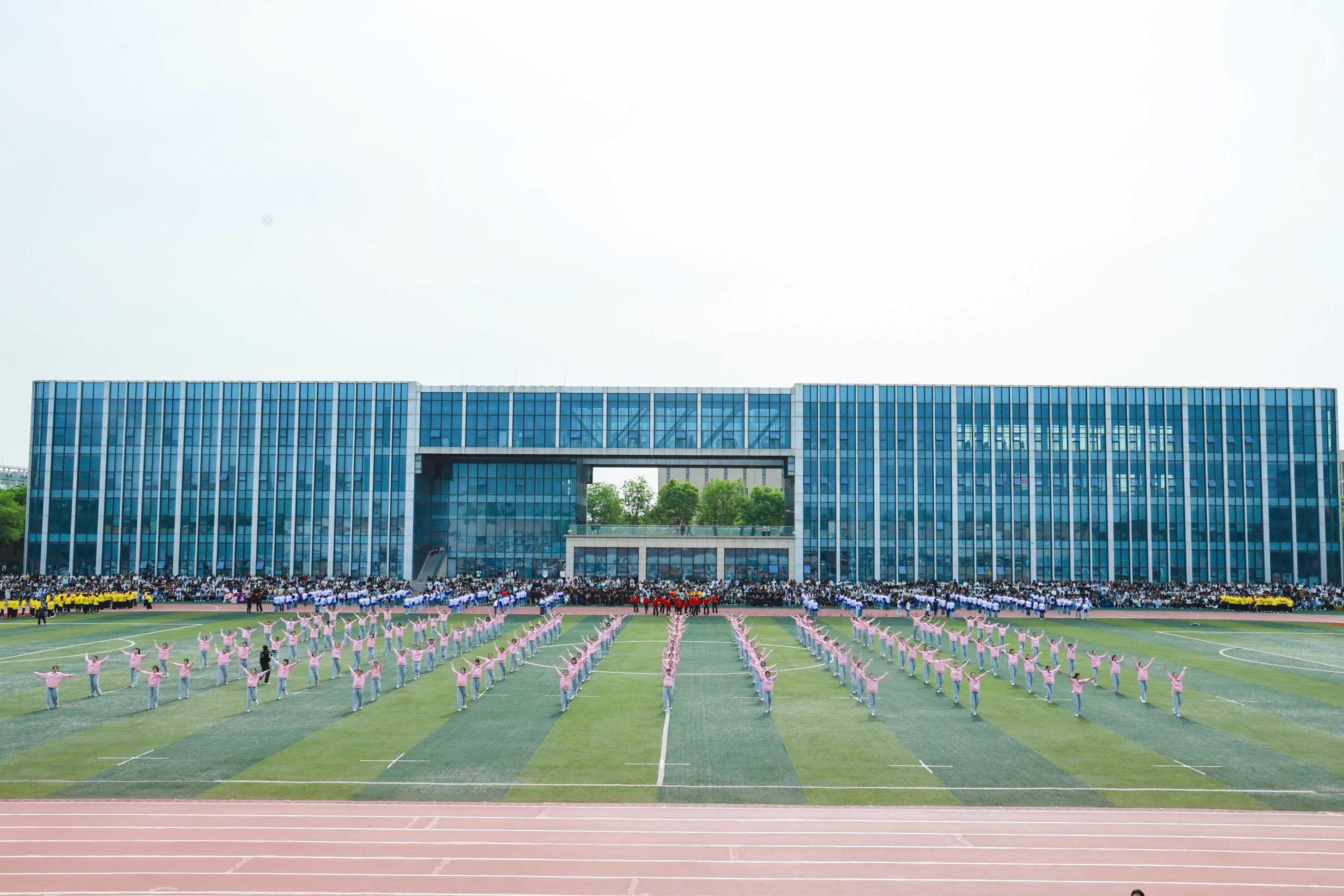 教职工方队化身粉色浪潮,144双手共绘樱花海,老师们秒变追风舞者,团队协作默契满分,欢笑与汗水交织成最萌年龄差表演。