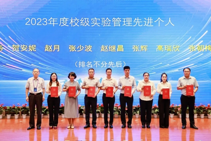 副校长于国亮为获得“2023年度实验管理先进个人”颁奖