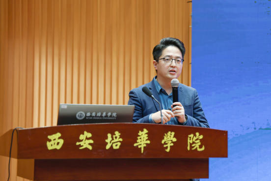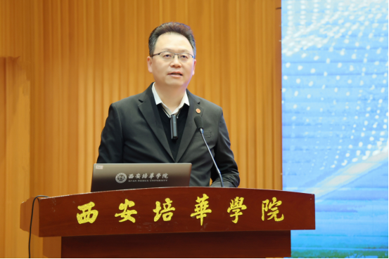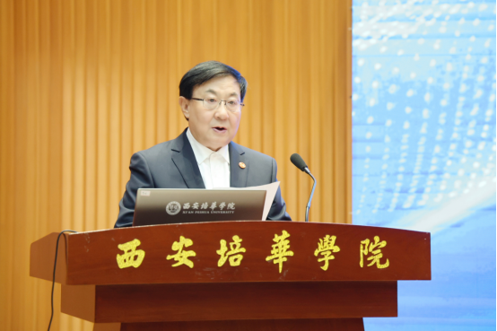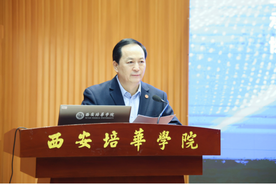 西安培华学院理事长姜波致欢迎词,他介绍了培华的发展历史,表示学校高度重视职业教育和实用性人才的培养,始终在创新中不断前行,近年来培华深度强化校企合作,目前合作企业超过200家,建立9个产业学院,他希望在数字化转型时代下,与政府、企业、同行携手并肩,培养更多适应未来的个性化数据人才。