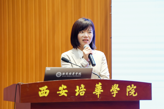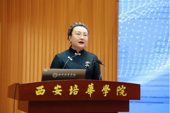 西安市数据局数字经济处处长慈澍馨讲话,她代表西安市数据局感谢培华提供的交流平台,并对本次大会举办给予了充分肯定,她表示数据资产已经成为核心生产要素,是推动经济社会发展的重要驱动力,西安市数据局高度重视数据资源价值管理的相关政策解读与落地推广,对培华新型数字人才的培养深表欣慰,期待学校持续开展数据人才创新创业活动与赋能产业,为我国数据产业的发展贡献智慧与力量。最后,她祝福培华在百年风华之际,在数据经济大潮中再创教育实践佳绩。