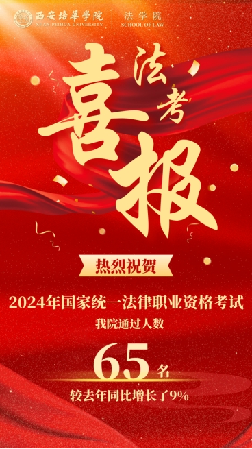 近日,2024年国家统一法律职业资格考试成绩公布。西安培华学院法学院共187名学生参加本届法考,其中65名学生顺利通过考试,通过率达34.8%,同比去年增长了9%。