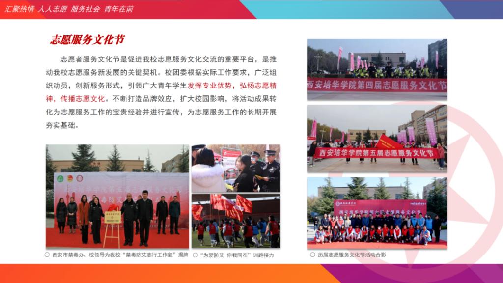 志愿服务是主体性育人的重要途径、隐性化育人的重要方式、实践化育人的重要载体。通过志愿服务活动,使培华青年在了解国情中坚定理想信念、在社会参与中厚植爱国主义情怀、在实践中增长知识见识等,努力成长为有理想、有本领、有担当的时代新人。志愿服务作为新时代青年参与最广泛、最自觉、最主动、最喜爱的实践活动,可发挥其育人优势,为培养有理想、有本领、有担当的时代新人贡献力量。