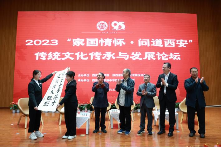 主旨论坛发言嘉宾集体向主办方西安培华学院赠送书法作品