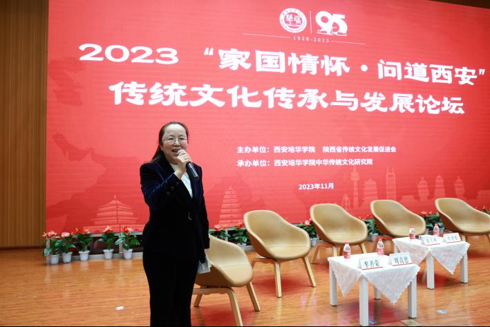 为学习贯彻习近平新时代中国特色社会主义思想,弘扬家国情怀,传承中华传统文化,振兴文化产业,为西安经济高质量发展建言献策、蓄势赋能,11月6日,由西安培华学院、陕西省传统文化发展促进会联合举办的2023“家国情怀·问道西安”传统文化发展论坛在西安培华学院图书馆报告厅隆重开幕。开幕式由西安培华学院校长李映方主持。