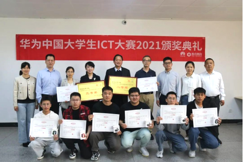成立副院长宣布获奖名单,并开始颁奖,本次华为ICT大赛西安培华学院共有2个团队获奖,其中二等奖1个,三等奖1个。