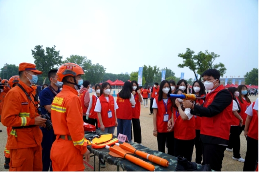 师生们在现场观摩学习了直升机、无人机、救援摩托车、新型救援装备器材和山岳救援、城市防汛抢险、地震救援、消防救援等多个应急救援设备;参与了“心肺复苏”、“火场逃生体验”、“VR安全游戏”、“消防破拆救援展示”、“打绳结”等丰富多彩的互动游戏。大家纷纷表示通过虚拟场景提高灾害发生时体验感,直观生动地获得了减灾避险和自救互救知识。