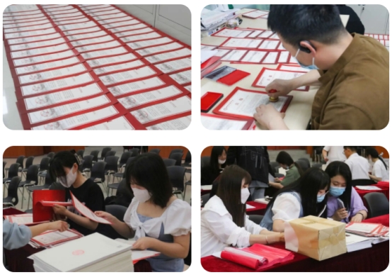 一份份喜报,都代表着认可与激励,一个个红印章,都是来自老师们的祝福。经过认证核对信息、小心分装,一份份载满荣誉的邮件,飞过大江南北,飞向每一位翘首以盼的家长的手中。