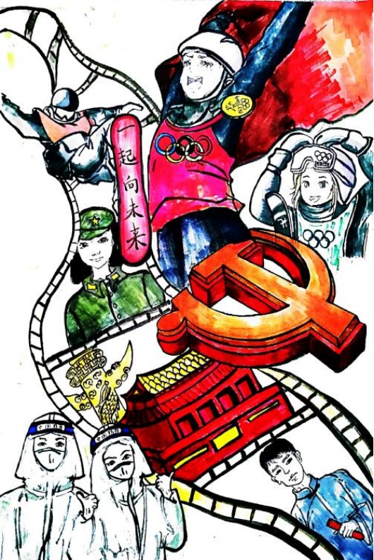 视觉传达专业尹易安:2022年,党的二十大即将召开,中国共产主义青年团迎来成立100周年。在党的领导下,我们青年人要不忘初心,牢记使命!接过党手中的旗帜,坚定不移跟党走。为实现中国梦贡献自己的青春力量!