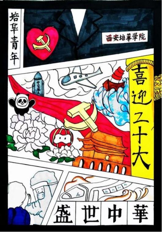 色彩、想象力、多样的创作形式,培华学子用一幅幅作品重温党的光辉历程,讲述新时代的中国故事,展示青年学子心中的中国梦,表达“永远跟党走,建功新时代”的豪情壮志。本次活动提高了学生发现美、创造美、欣赏美、感受美的能力,推动学校美育发展及校园文化建设,让培华学子用最好的成绩,迎接党的二十大胜利召开。