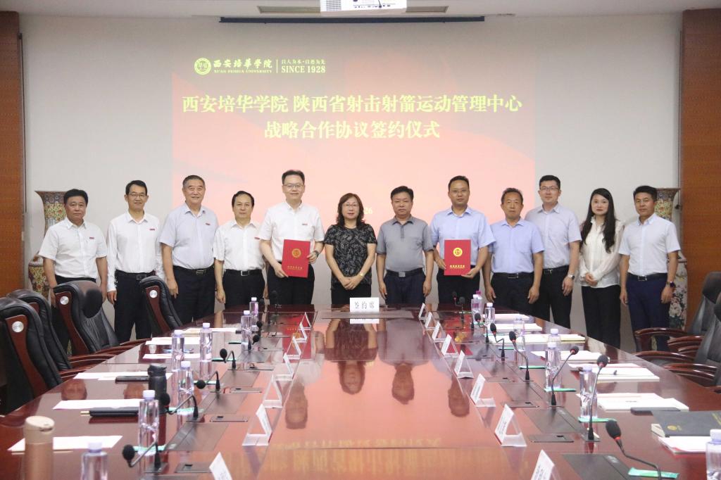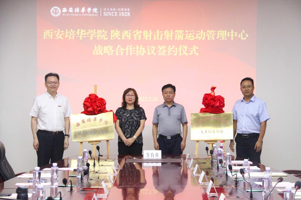 为进一步加强校政合作、增进产教融合,7月26日下午,西安培华学院与陕西省射击射箭运动管理中心在学校明德楼第一会议室举行了战略合作协议签约仪式暨陕西省射击射箭运动管理中心人才培养基地、西安培华学院射击射箭教学基地揭牌仪式。