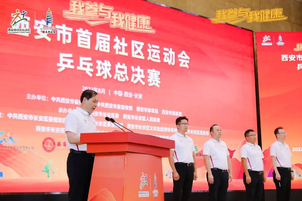 运动员代表和裁判员代表郑重宣誓后,中共西安市委组织部副部长、市公务员局局长张勇宣布西安市首届社区运动会乒乓球总决赛正式开赛。