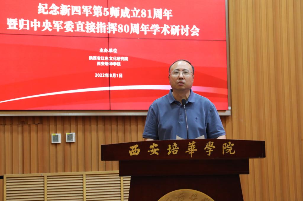 8月1日上午,在中国人民解放军建军95周年之际,由陕西省红色文化研究院、西安培华学院联合举办的“纪念新四军第五师成立81周年暨归中央军委直接指挥80周年学术研讨会”在培华举行。新四军第5师老战士、老同志亲属代表,中国新四军研究会有关负责人、特邀党史专家,高等学校专家教授等通过线上线下等形式参加了会议。