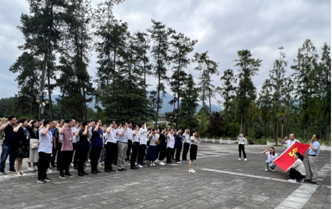 在参观完川陕革命纪念馆后,全体党员同志面向党旗,举起右拳,重温入党誓词,许下勇担时代使命的承诺。