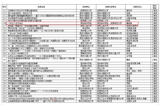 按照《陕西高等学校人文社会科学研究优秀成果奖励办法》,经各校推荐、专家评审、奖励委员会审议、省教育厅厅务会审定、公示等程序,共评出2021年度陕西高等学校人文社会科学研究优秀成果奖获奖成果797项,其中,西安培华学院魏耕原教授的论文《<史记>互见法论》,荣获2021年度陕西高等学校人文社会科学研究优秀成果奖论文类三等奖。