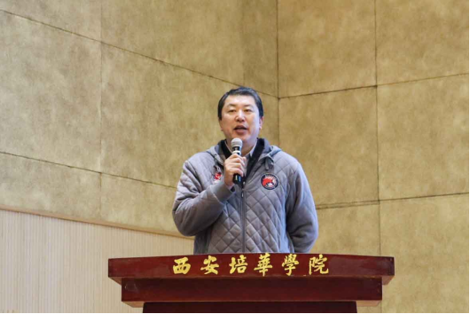 在启动仪式上,西安培华学院姜波理事长致欢迎辞,他表示培华体院学子要不忘初心、牢记培华体育人的使命担当,淡薄名利,继续耕耘、再攀高峰,守护培华人的体育使命和“大健康”责任,为书写陕西青年篮球人更为绚丽的明天而努力奋斗。
