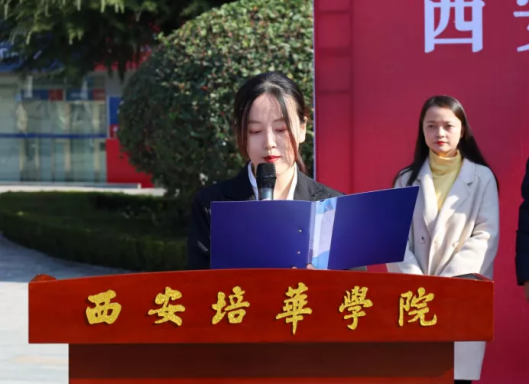 校团委组织部部长董莹老师宣读《关于举办西安培华学院第六届志愿服务文化节的通知》