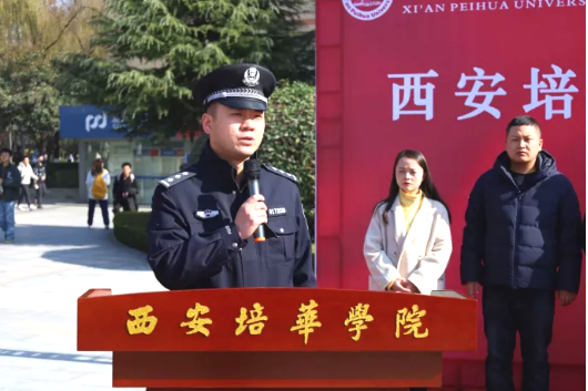 西安公安长安分局禁毒大队一中队中队长田添警官首先充分肯定了学校近几年在“禁毒防艾”等志愿服务工作中取得的成绩,并表示今后要在禁毒宣传等方面加强合作。
