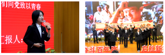 “百年旗引煜锤镰,砥砺前行意志坚。薪火相传兴伟业,同心筑梦谱新篇。”青春正当时,12个团支部以良好的精神面貌、饱满的热情、振聋发聩的铮铮誓言引导团员青年时刻牢记“请党放心”的郑重承诺,增强“强国有我”的使命担当 ,激励同学们不忘初心、牢记使命,在新时代、新的发展阶段展现新作为,作出新贡献。