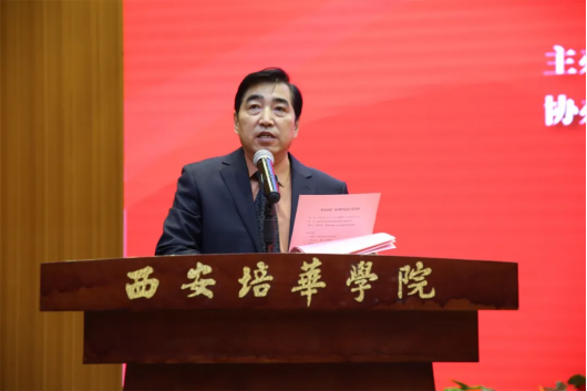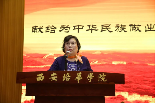 姜波理事长在大会上讲话,他指出,西安事变在中国近代历史上具有重大意义和深远影响。西安事变及其和平解决,结束了十年内战,促成了第二次国共合作,成为中国由长期内战走向全民抗战的转折点,成为扭转时局的枢纽。杨虎城将军也因他们崇高的爱国义举被誉为中华民族的“千古功臣”,永载史册,彪炳后世。他强调,回顾历史是为了更好地展望未来。培华创立以来,始终与党和国家同呼吸、共命运,早期培华的师生们为抗日战争做出了积极贡献。近年来,学校不断传承红色基因,赓续红色血脉,举办了形式多样、内容丰富的红色文化教育活动,让广大青年积极参与,推动红色文化的传播与教育。他深切回顾了杨虎城将军和谢葆真烈士与早期培华的深厚历史渊源,勉励新时代的青年大学生要缅怀英烈、砥砺奋斗、居安思危、攻坚克难,为实现中华民族伟大复兴的中国梦作出积极贡献。