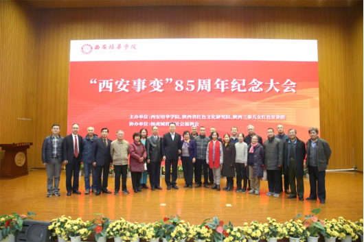 12月12日是“西安事变”发生85周年,为大力弘扬伟大的爱国主义精神,缅怀西安事变的历史功绩,传承张学良、杨虎城等爱国将领的爱国主义精神,激发广大师生的爱国主义情怀,西安培华学院、陕西省红色文化研究院、陕西三秦儿女红色宣讲团、杨虎城将军社会福利会联合举办了纪念“西安事变”85周年纪念大会。