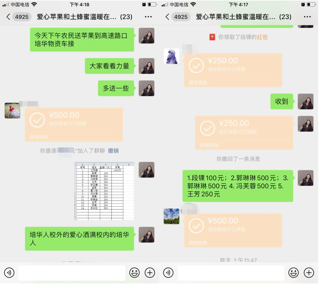 “帮助农户把农产品卖出去,减少损失,也为并肩作战的同事们送去温暖”。一向很活跃的江老师在她的朋友圈里随即发布了爱心接龙活动,短时间里,数十名居家办公的老师们也参与进来,认购了2000斤苹果和64斤蜂蜜。