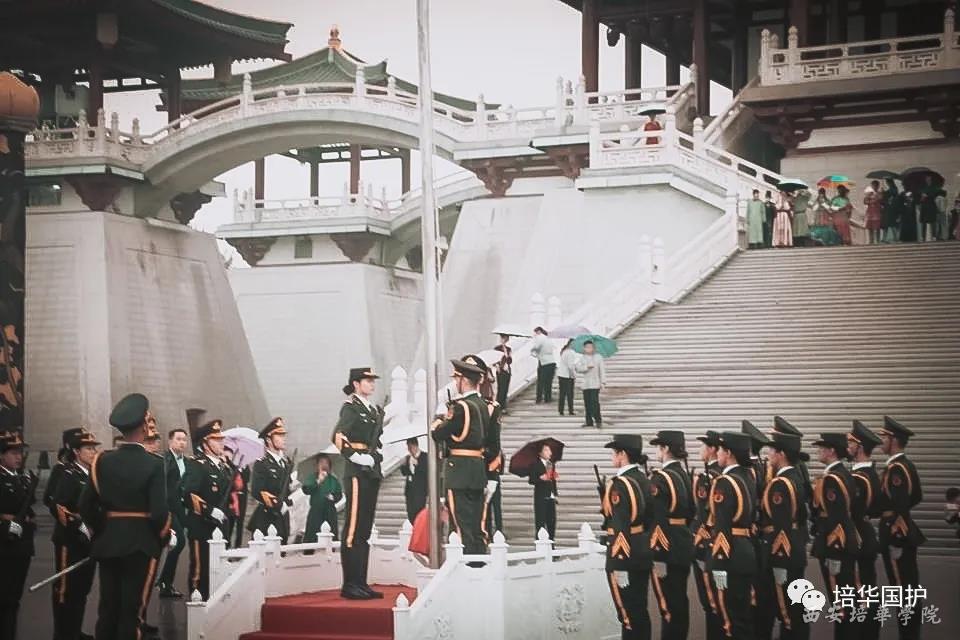 西安培华学院国旗护卫队举办大唐柔情芙蓉园、家国同庆红旗扬活动