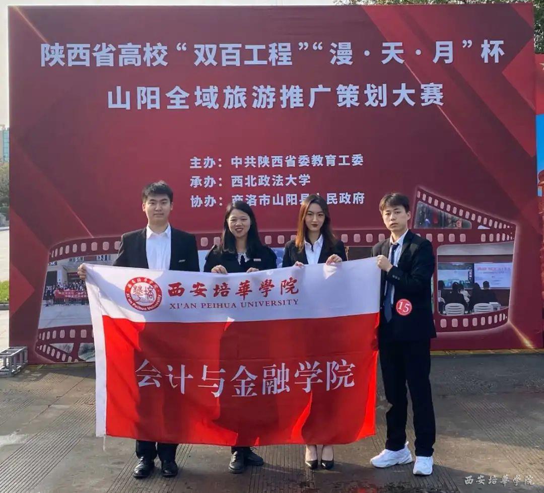 在西安培华学院会计与金融学院江凤香老师的带领下,由人力资源管理专业任宇春、范力、黄荟臻,市场营销专业霍叙佳、王灿、黄腾辉同学组成的西安培华学院代表队,突破重重选拔赛比赛,荣获本次大赛二等奖的佳绩,黄荟臻和任宇春同学获聘山阳县旅游形象大使称号。